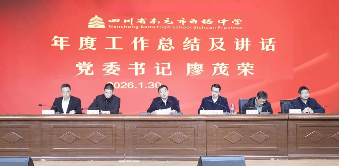 2026年1月30日上午,四川省南充市白塔中学2025—2026学年度上期期末教职工大会在学校第二学术厅隆重举行。学校党委书记廖茂荣、校长罗建军、党委副书记何松涛、副校长王昌明、纪委书记佘洪、副校长任致远出席会议。大会由校长罗建军主持。