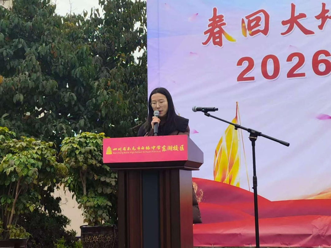 他勉励全体师生:春启新程,当不负时代;策马扬鞭,当勇攀高峰。希望全体教师坚守立德树人使命,深耕课堂、精进业务;希望全体学子心怀理想、勤学笃行,在奋斗中绽放青春光彩,在拼搏中成就人生价值,共同推动东湖校区向着更高质量、更具特色、更有温度的教育目标阔步前行。