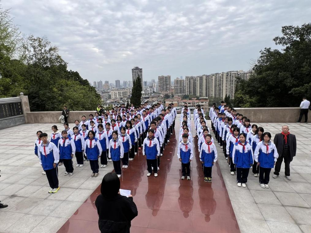 3 月 27 日上午,学校关工委、校团委组织师生代表前往南充烈士陵园,举行庄重的祭扫仪式。在巍峨的烈士纪念碑前,全体师生整齐列队、肃立默哀,向革命先烈敬献花篮、三鞠躬,以最诚挚的敬意缅怀英烈。校团委书记代蓉梅寄语学子,要铭记先烈舍生取义的壮举,将爱国情化为报国行;关工委主任明可亮号召同学们传承红色精神,以奋斗姿态书写青春华章。仪式上,学生们高举右拳,重温入队誓词,铮铮誓言回荡陵园,彰显新时代少年的责任与担当。随后,师生走进革命烈士事迹陈列馆,在老照片、旧文物前驻足凝视,重温峥嵘岁月,汲取精神力量。