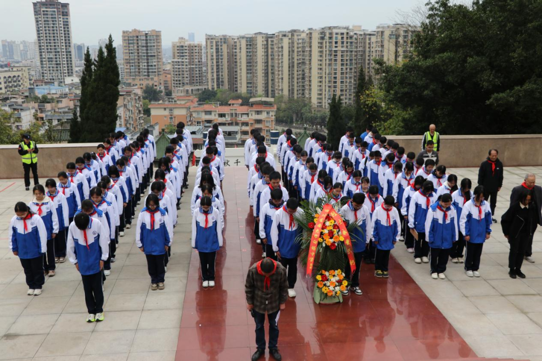 清明祭英烈,薪火永相传。为深切缅怀革命先烈的丰功伟绩,厚植学生爱国主义情怀,2026年3月27日上午,南充市白塔中学关工委、团委组织校本部与东湖校区近150名师生前往南充烈士陵园,开展“缅怀革命先烈 激发爱国热情”主题祭扫活动。