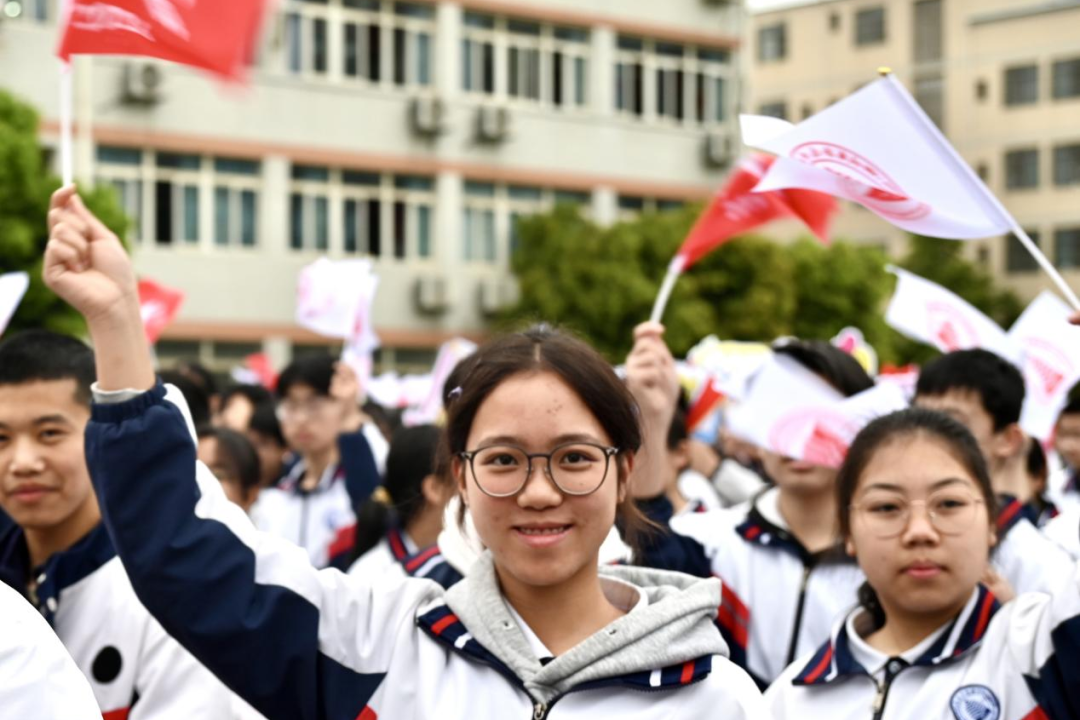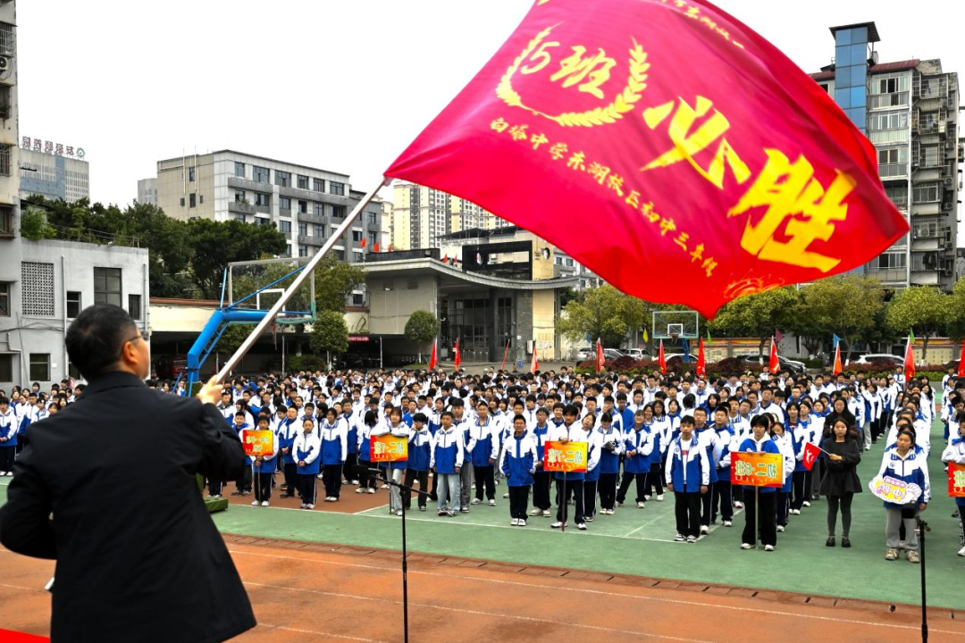 一面面鲜红的班旗在少年手中高高擎起,迎风招展、气势如虹。这是责任,是使命,是荣耀,更是东湖少年破釜沉舟、逐梦青春的必胜信念!