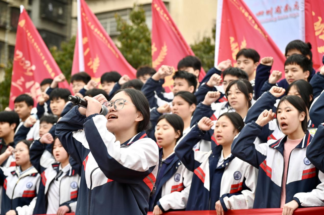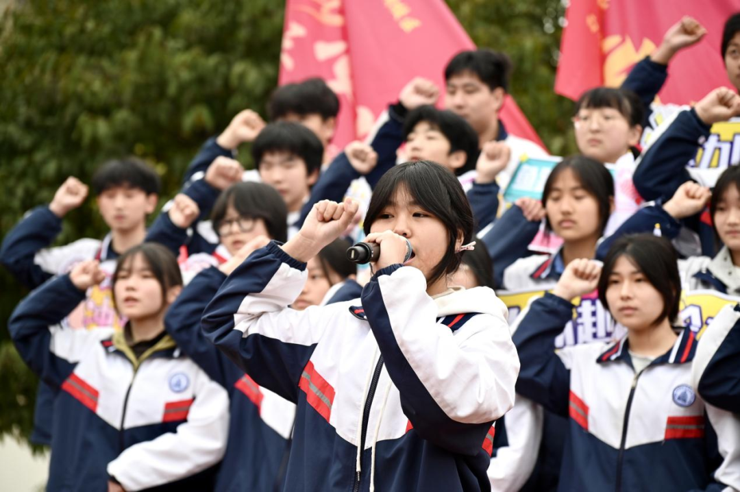 班旗在手,誓言在胸;少年有志,气贯长虹。各班学子队列整齐、目光如炬、昂首挺胸,依次庄严宣誓。青春的呐喊声震彻校园,一浪高过一浪,点燃全场激情。