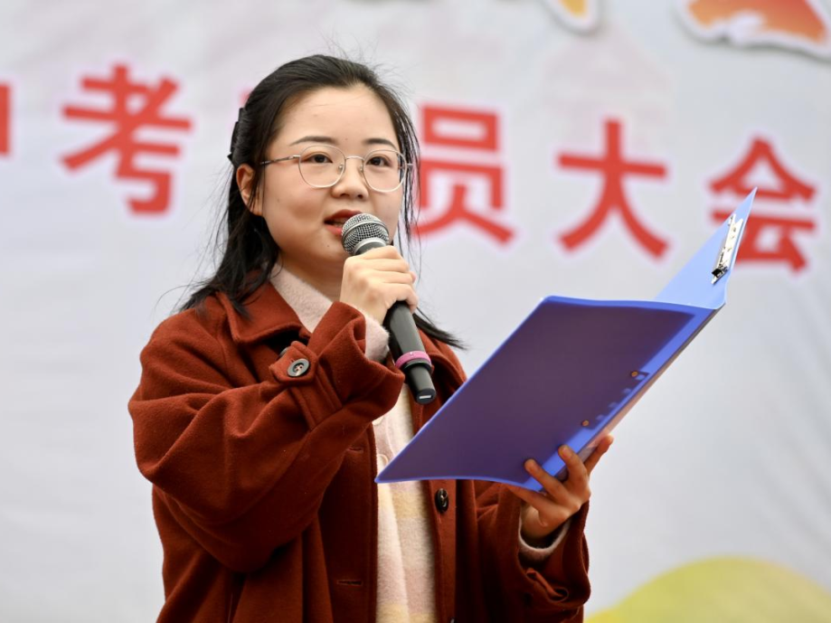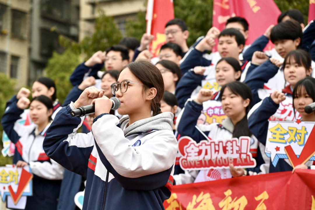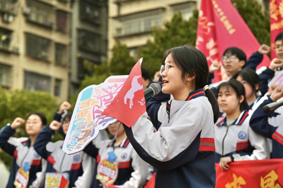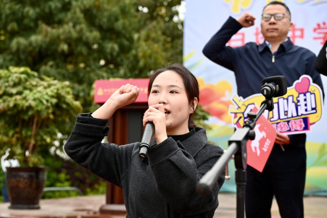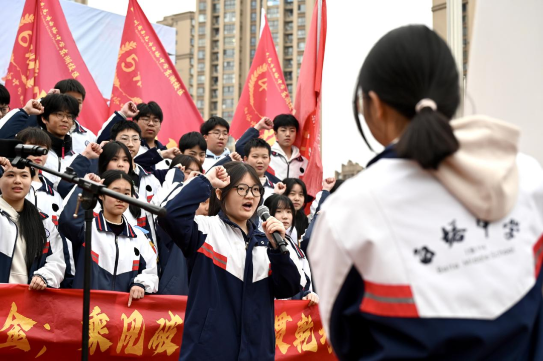 少年自有凌云志,不负韶华行且知。学生代表初三2班陈诗敏同学深情发言,她回望三年成长之路,感念师恩、珍惜时光,号召全体同学以笔为剑、以勤为径,在最后的冲刺中脚踏实地、奋勇争先,用奋斗书写青春最美答卷。真挚的话语、坚定的信念,赢得全场阵阵掌声。