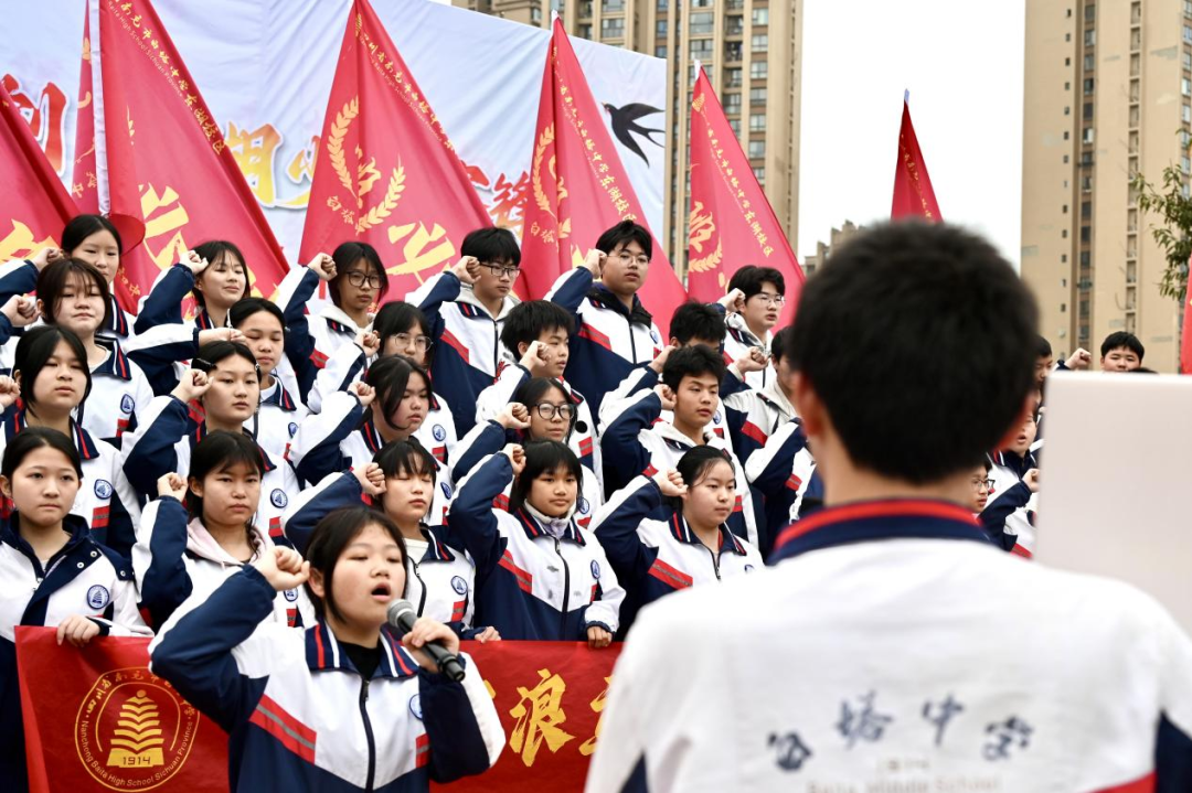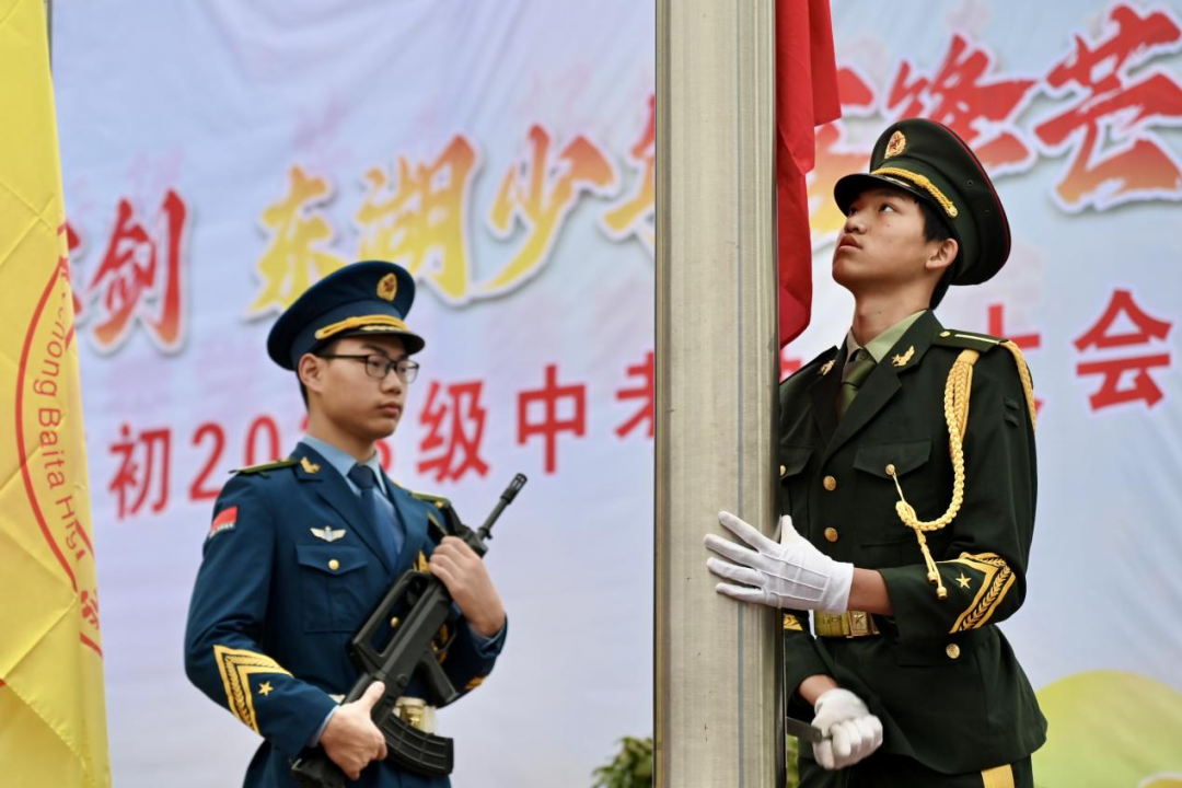 一面战旗,千钧重托;一声号令,热血沸腾。战旗在晨风中高高飘扬,承载着学校的厚望、师长的期盼,更凝聚着东湖少年逐梦青春的凌云壮志。