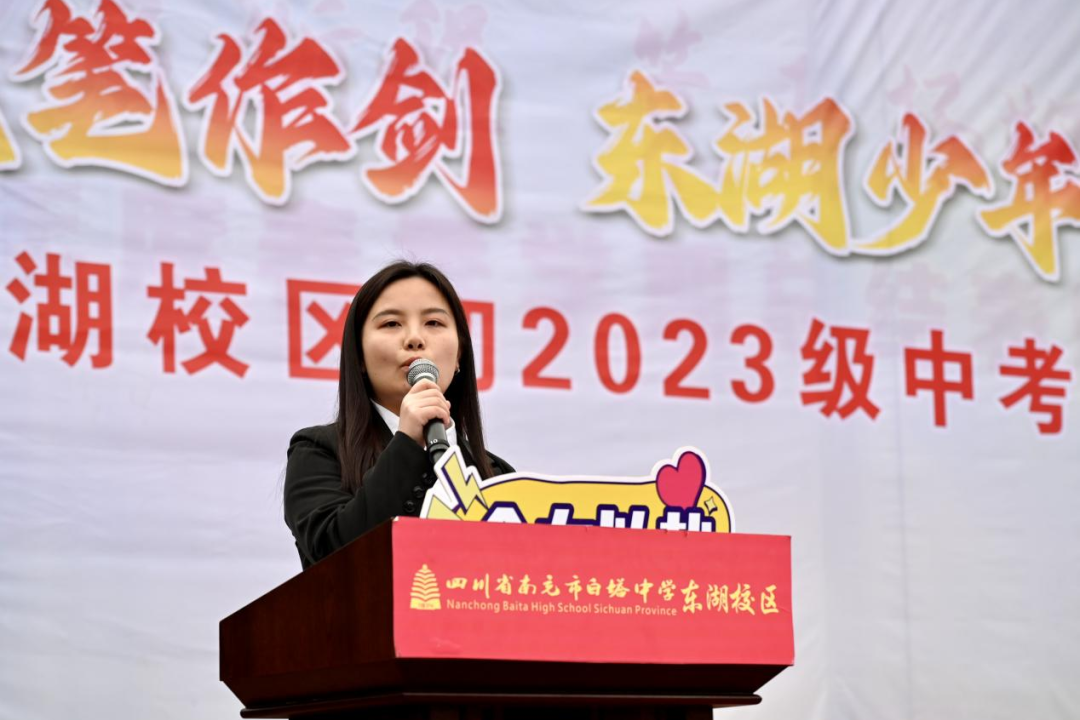 谆谆教诲寄厚望,殷殷嘱托催奋进。东湖校区党支部书记、年级主任徐林为大会致辞。他深情回顾同学们三年来的成长蜕变,勉励全体初三学子咬定目标、稳扎稳打、勤学善思、全力以赴,把誓言化为行动,把激情化为力量,在六月的考场上提笔有底气、落笔有锋芒,不负青春、不负母校、不负时代!话语铿锵有力、振奋人心,为全体学子注入不竭动力。