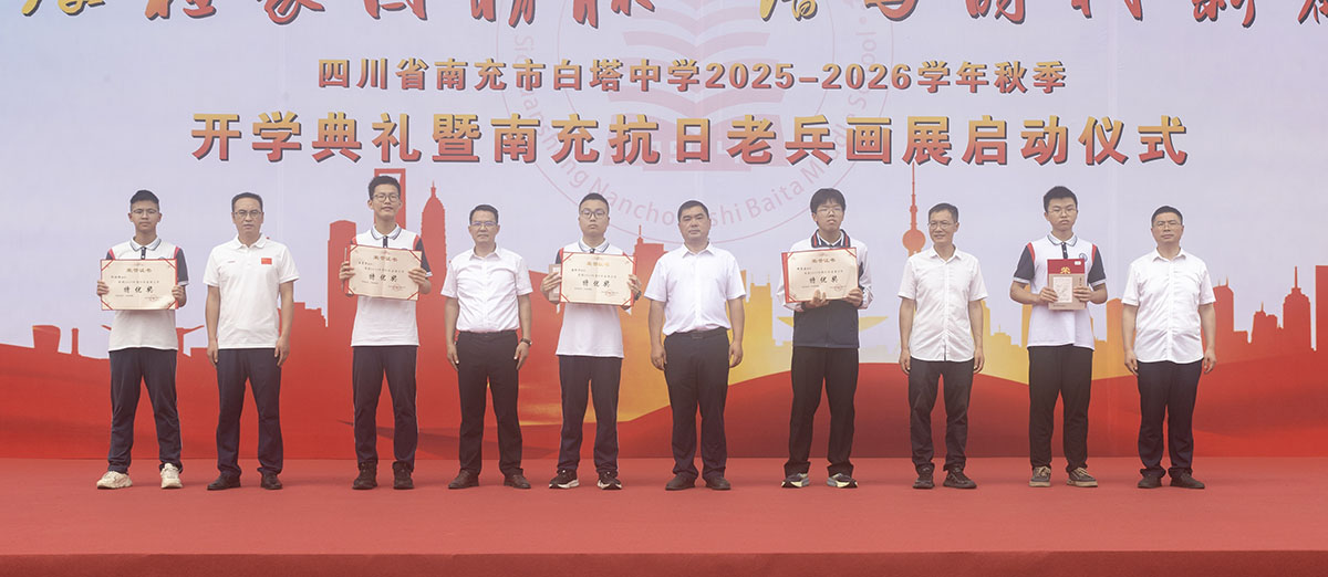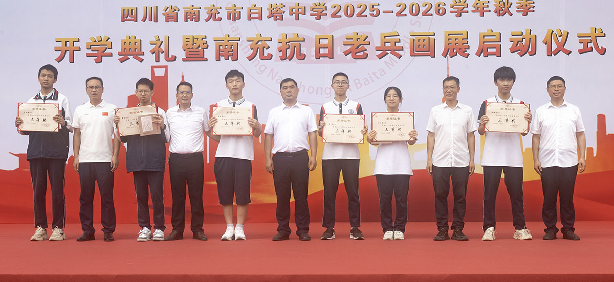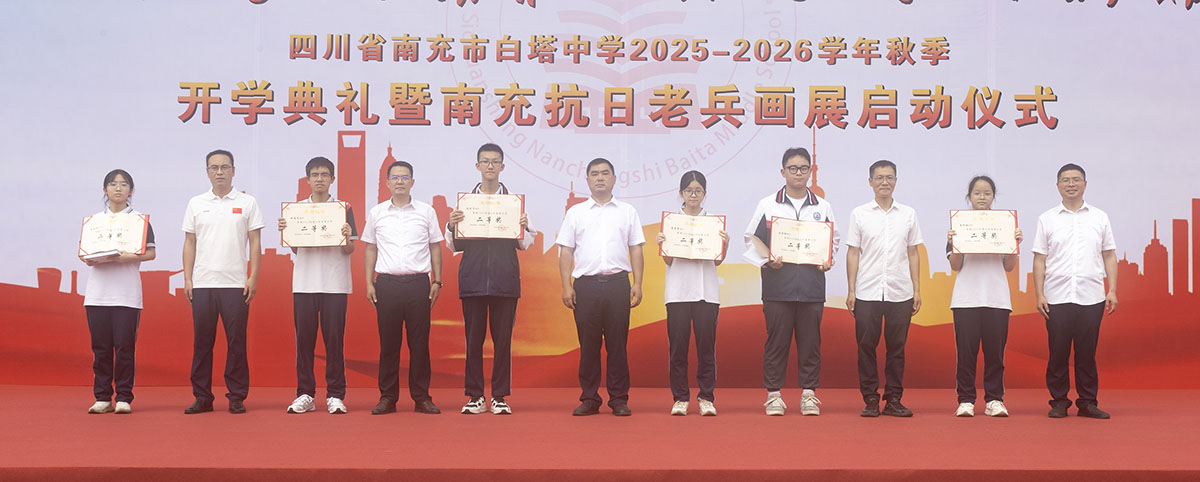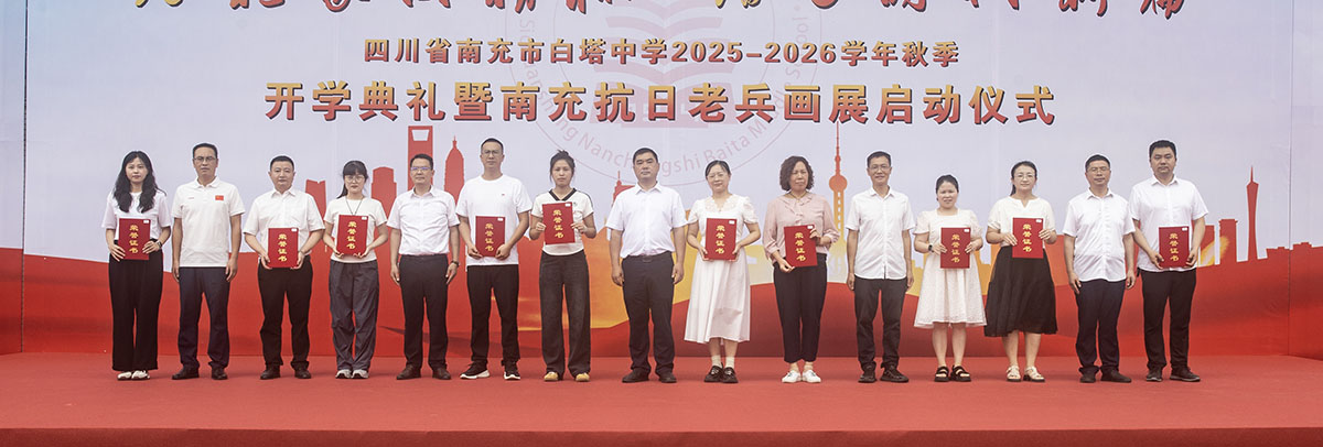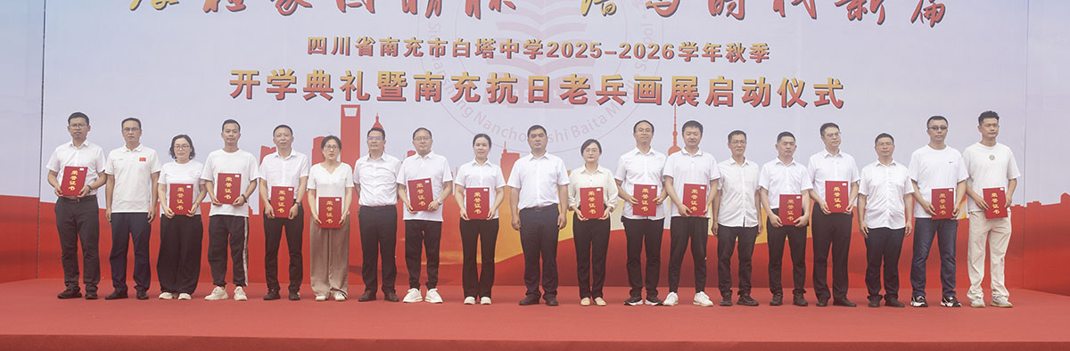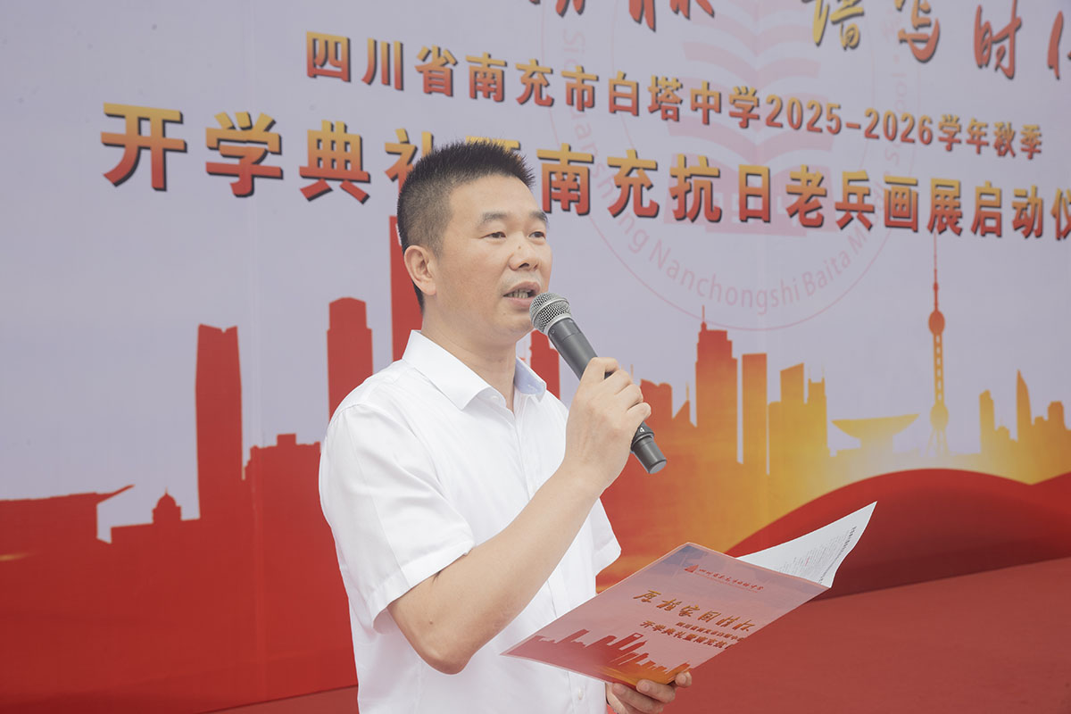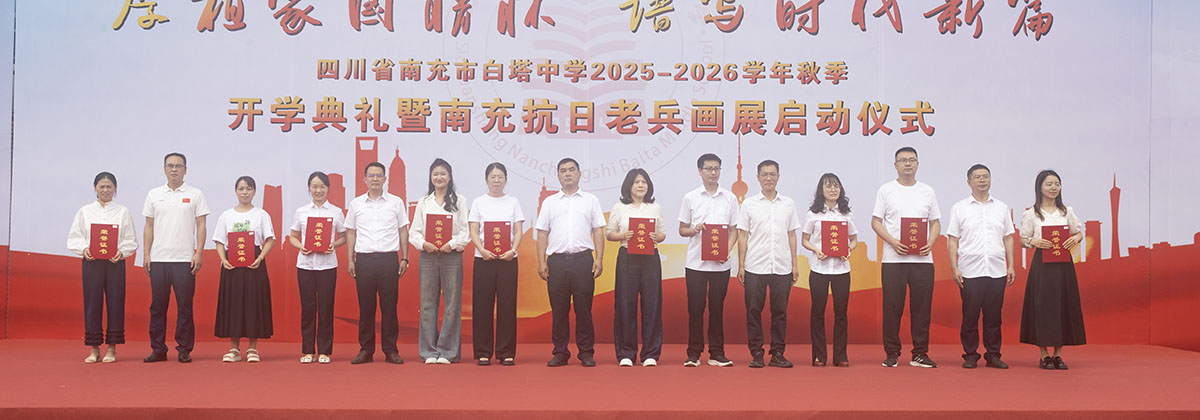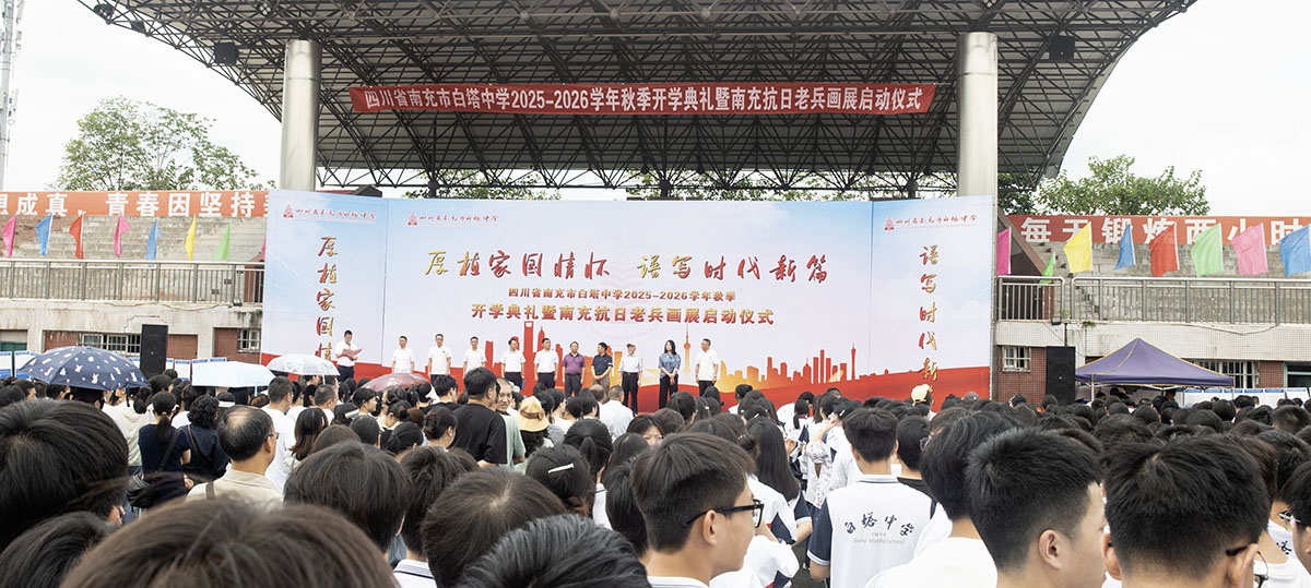 秋风送爽启新程,奋楫扬帆再出发。9月8日,四川省南充市白塔中学在运动场隆重举行2025年秋季开学典礼暨南充抗日老兵画展启动仪式。高坪区老年诗书画研究会会长范果太、高坪区关心下一代工作委员会常务副主任刘培元、高坪区慈善总会理事长蒋家荣、高坪区老干局服务中心主任张莉、南充市抗战历史文化研究会会长程显权及学校领导班子出席开学典礼。开学典礼由学校党委副书记何松涛主持。开学典礼在庄严的升旗仪式中拉开序幕。鲜艳的五星红旗冉冉升起,全体师生肃立行礼,齐唱国歌。