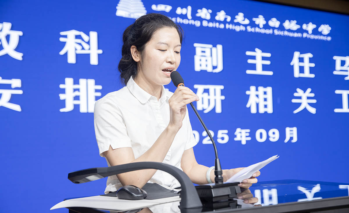 为统筹推进新学期教学教研工作,明确目标方向、凝聚发展合力,助力学校教育质量再攀新高,2025年9月10日下午4:30,南充市白塔中学在第二学术厅隆重召开2025年秋季教学教研工作会议。校级领导、联系教研组干部、教务处与教科室干部、信息中心干部、各年级主任、教研组长、备课组长及各学科信息员参会,会议由任致远副校长主持。