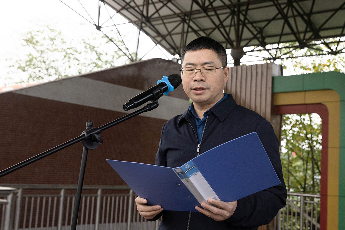 在庄严的升旗仪式后,学校副校长任致远致开幕辞,任校长谈到:近年来,学校始终坚持“五育并举、科创赋能”的办学思路,从标准化科创实验室的建成投用,到“课程筑基、社团提质、竞赛增效”三维育人体系的完善,从无人机社团惊艳市级赛场到机器人战队屡获省级殊荣,我们一步步将科创梦想的种子播撒在校园的每一个角落,让科学精神成为白中学子最鲜明的精神标识。任校长强调:全体教职工要以科技创新活动周为契机,进一步挖掘学科教学中的科创元素,将科学精神融入教育教学全过程。