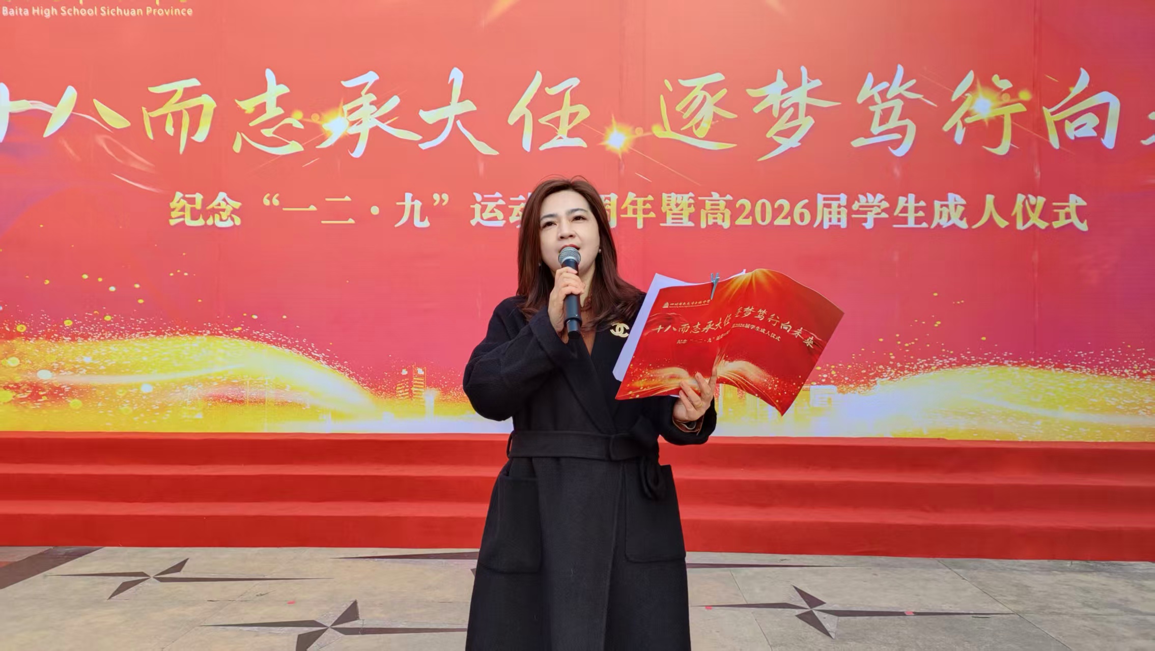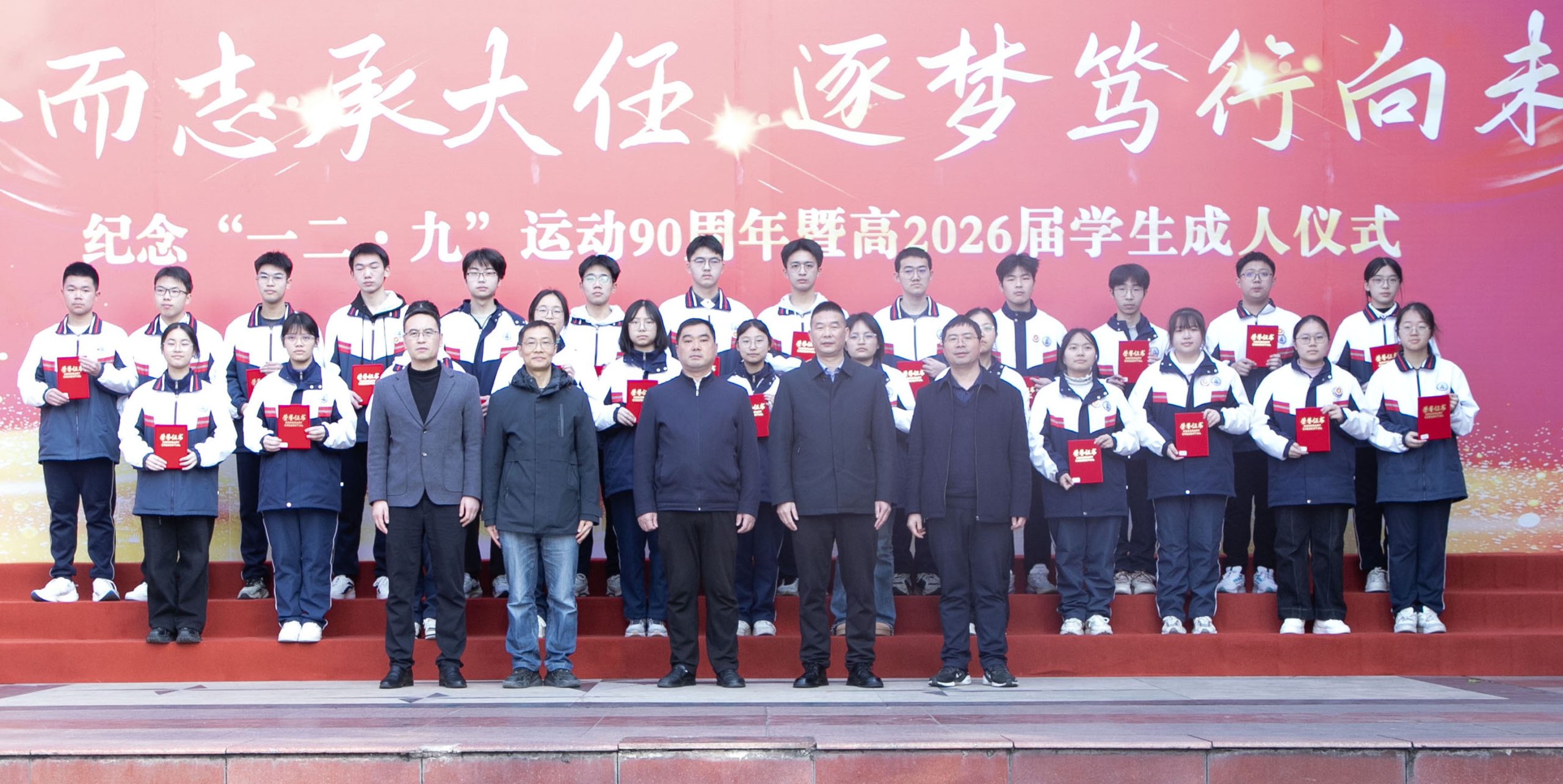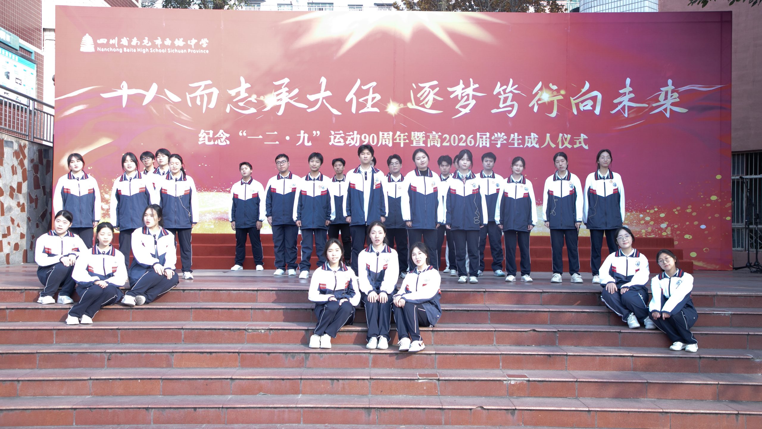 十八而志承大任,逐梦笃行向未来。12月7日上午,四川省南充市白塔中学隆重举行纪念“一二·九”运动90周年暨高2026届学生成人仪式。学校党委书记廖茂荣、党委副书记何松涛、副校长王昌明、纪委书记佘洪、副校长任致远、高三年级全体师生及家长代表共同见证了这场青春的庆典。