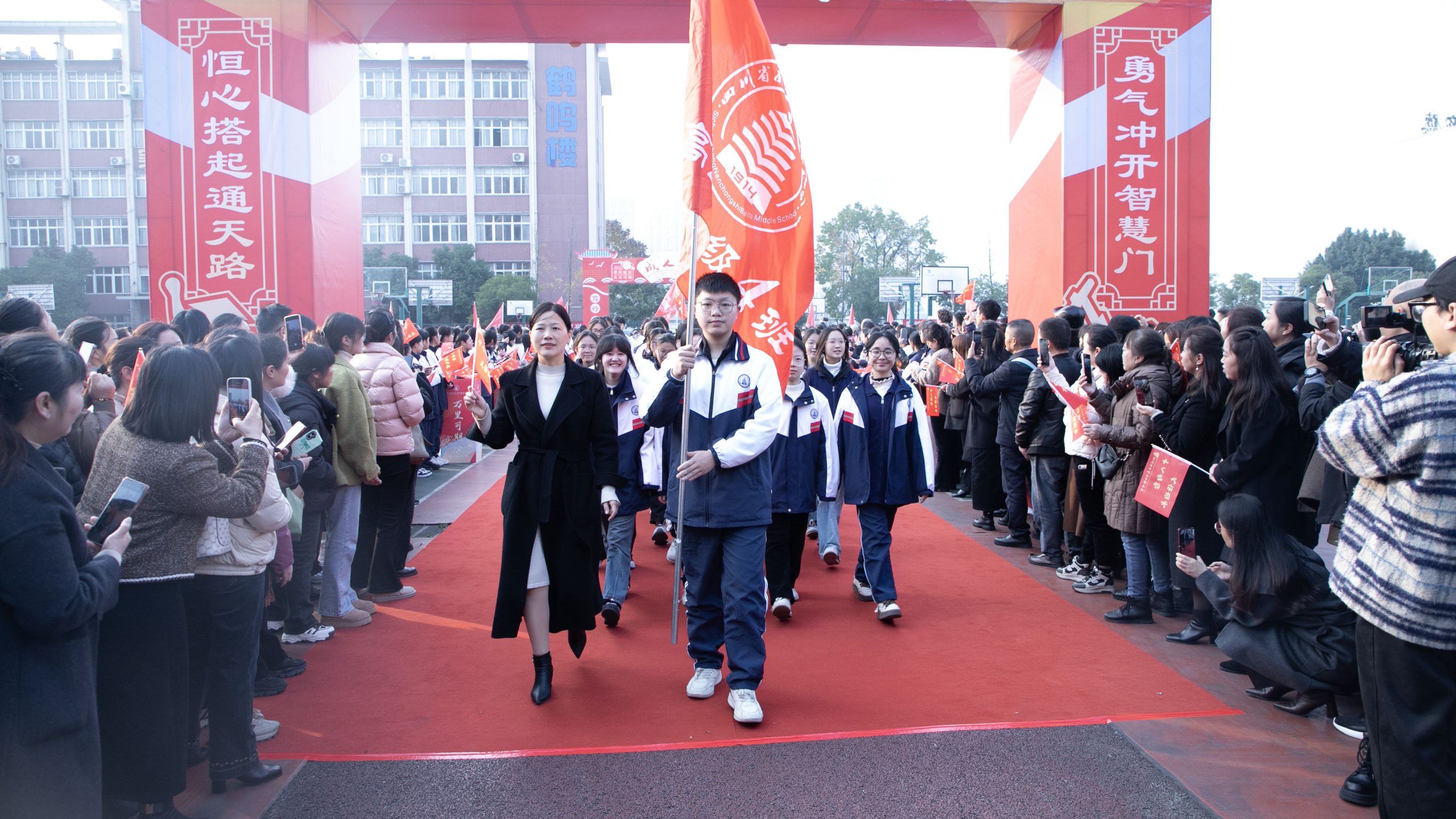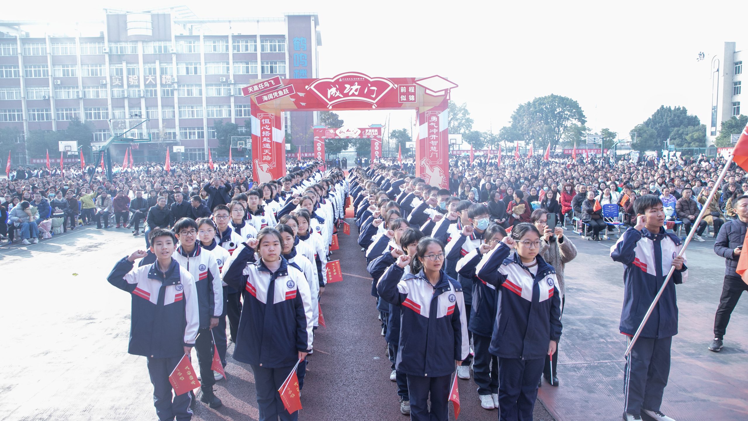 激昂的音乐声中,高三学生在班主任的带领下,以整齐的队列依次通过象征成长与责任的“成人门”和“成功门”。同学们高呼励志口号,声音嘹亮,响彻校园,展现了迈向人生新阶段的决心与豪情。