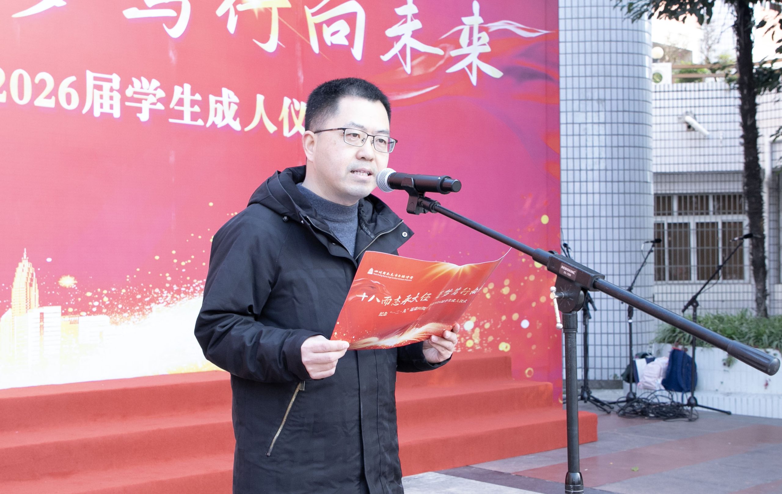 学校党委书记廖茂荣在致辞中向迈入成年的同学们表达了美好祝愿。他指出,同学们应从“一二·九”运动中汲取精神养分,以历史之光照亮青春底色,更要以成人之责锚定人生坐标,自觉将个人奋斗汇入时代发展的壮阔洪流。他还特别强调,每一段青春远航都离不开家校共育的温暖护航,感恩同行是成长路上不可或缺的精神力量。