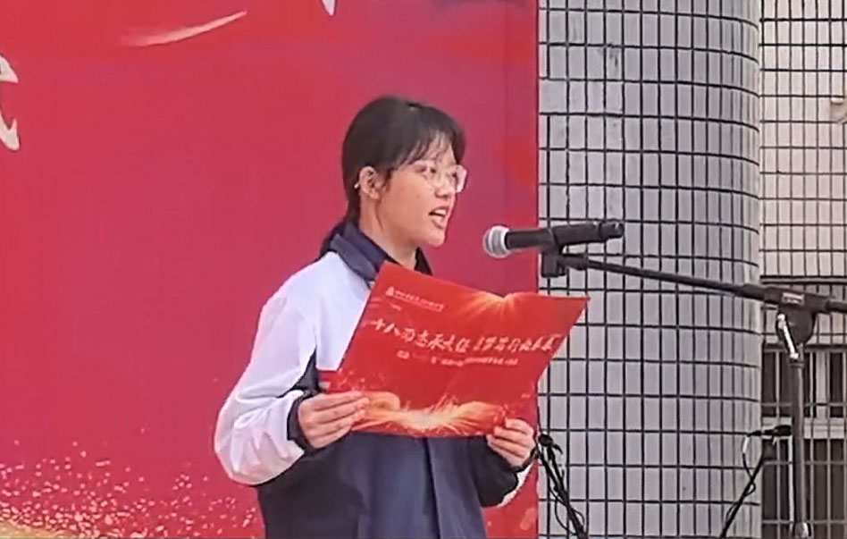 高三师生代表带来朗诵《畅想十八》,用深情的语言共同回首成长历程,展望青春未来。
