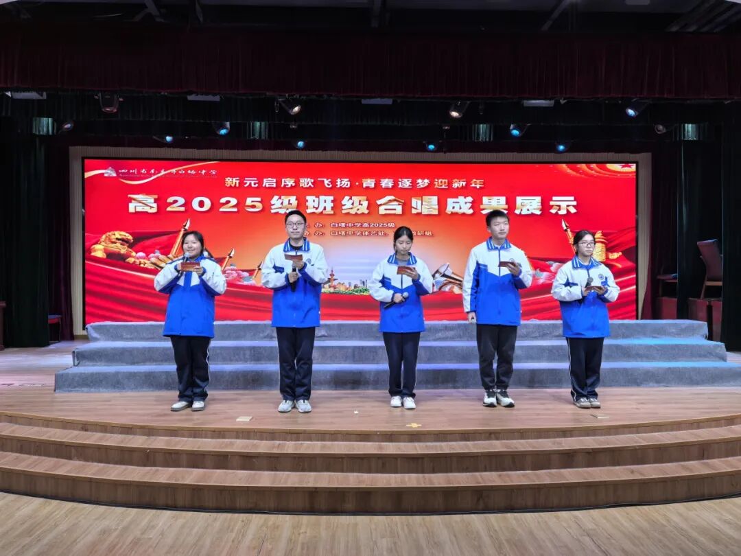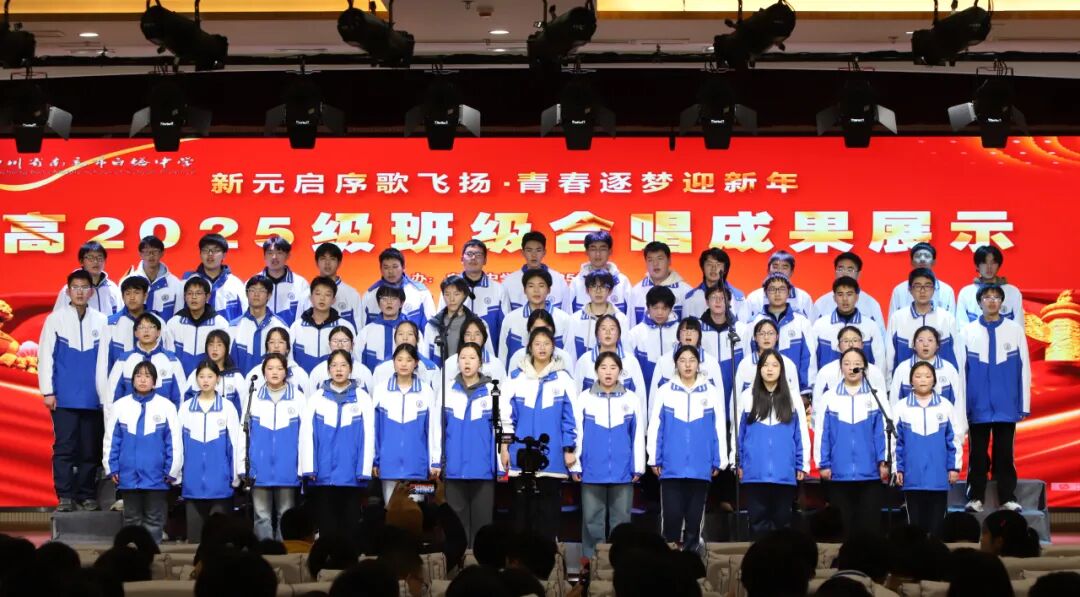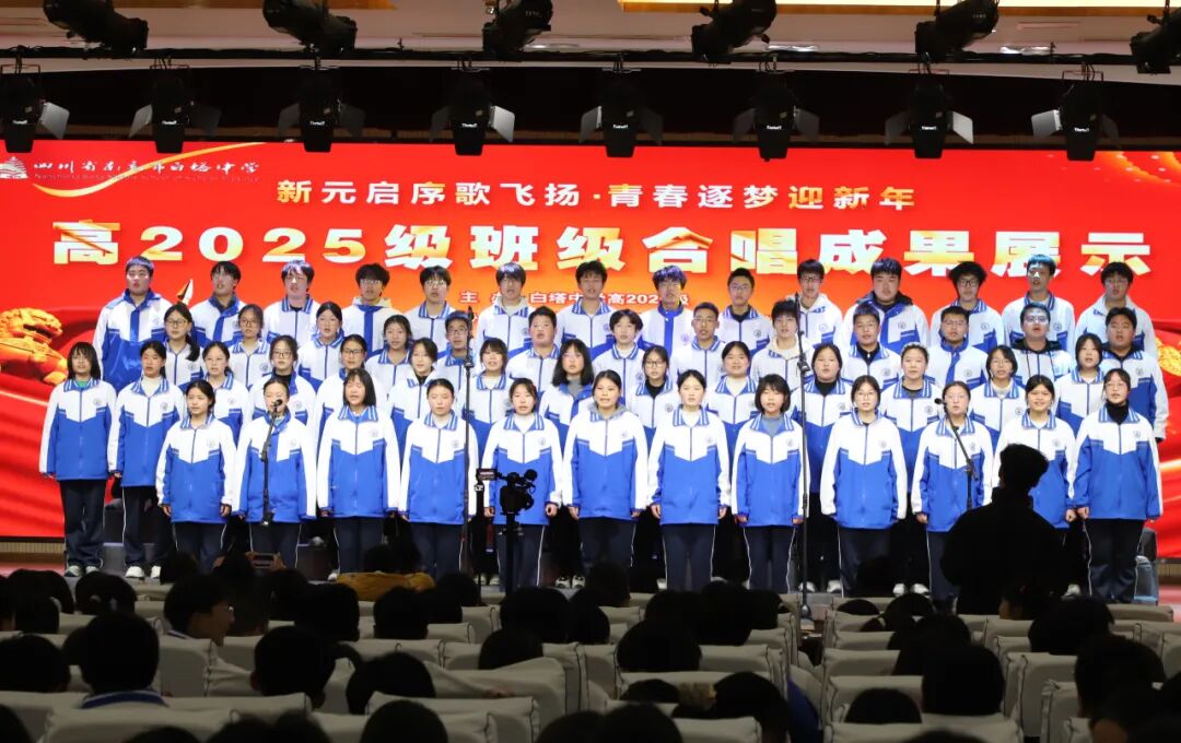 岁聿云暮,新元肇启;歌声嘹亮,青春激昂。为丰富校园文化生活,厚植家国情怀,展现高2025级学子的青春风采与班级凝聚力,白塔中学成功举办“新元启序歌飞扬,青春逐梦迎新年”主题班级合唱比赛。高一年级26个班级分为两场依次登台,用悠扬旋律唱响时代赞歌,用赤诚之心书写青春华章。