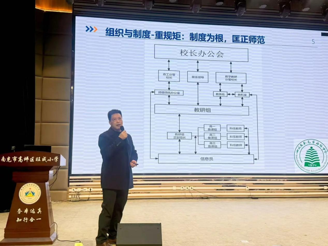 高坪区教体局党组成员赵宏在总结讲话中强调,星级学科教研组建设是推动区域教育质量提升的关键抓手,要求各校深化思想认识、增强责任使命,推动教研工作走深走实,为我校教研组建设锚定了方向、明确了路径,必将有力推动我校教研工作提质增效,助力学校教育教学质量再攀新高。