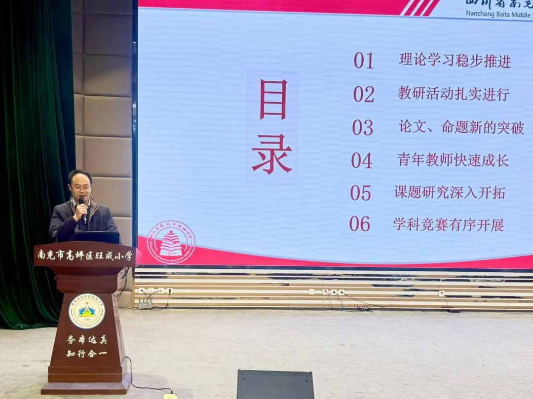 为深化教学教研改革,搭建优质教研交流平台,1月14日,高坪区2025年度星级学科教研组建设年度考核暨现场陈述活动在旺成小学顺利举行。我校高中语文、高中英语、高中地理、初中语文四大学科教研组凭借扎实的教研功底、突出的建设成果与鲜明的学科特色,成功获评高坪区2025年度优秀星级学科教研组,并在现场展评环节展现了白塔中学教研团队的过硬实力。